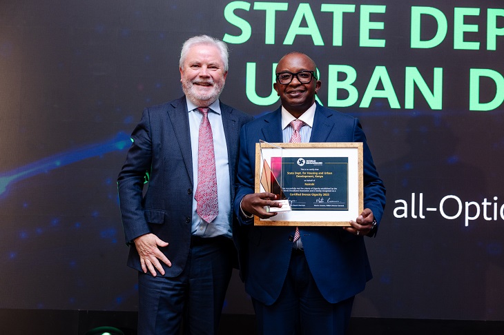 Kenya’s Affordable Housing Programme (AHP) has been elevated to a global model for urban development, receiving the prestigious Certified Bronze Gigacity Award 2025 from the World Broadband Association (WBBA) in Cape Town, South Africa. Housing Principal Secretary Charles Hinga, who received the award, was also recognized for his leadership in spearheading the smart cities initiative.