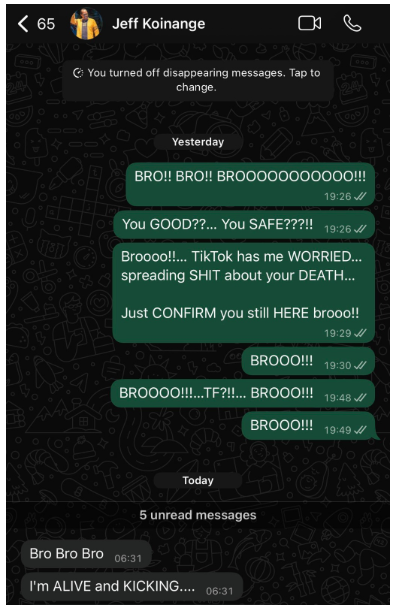 • One skeptic even demanded audio proof: “Atume voice note hata!” (Let him send a voice note at least!)